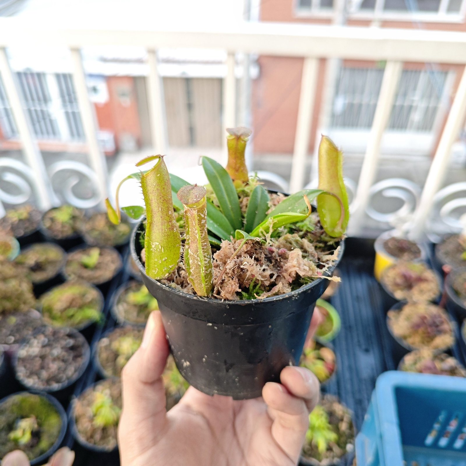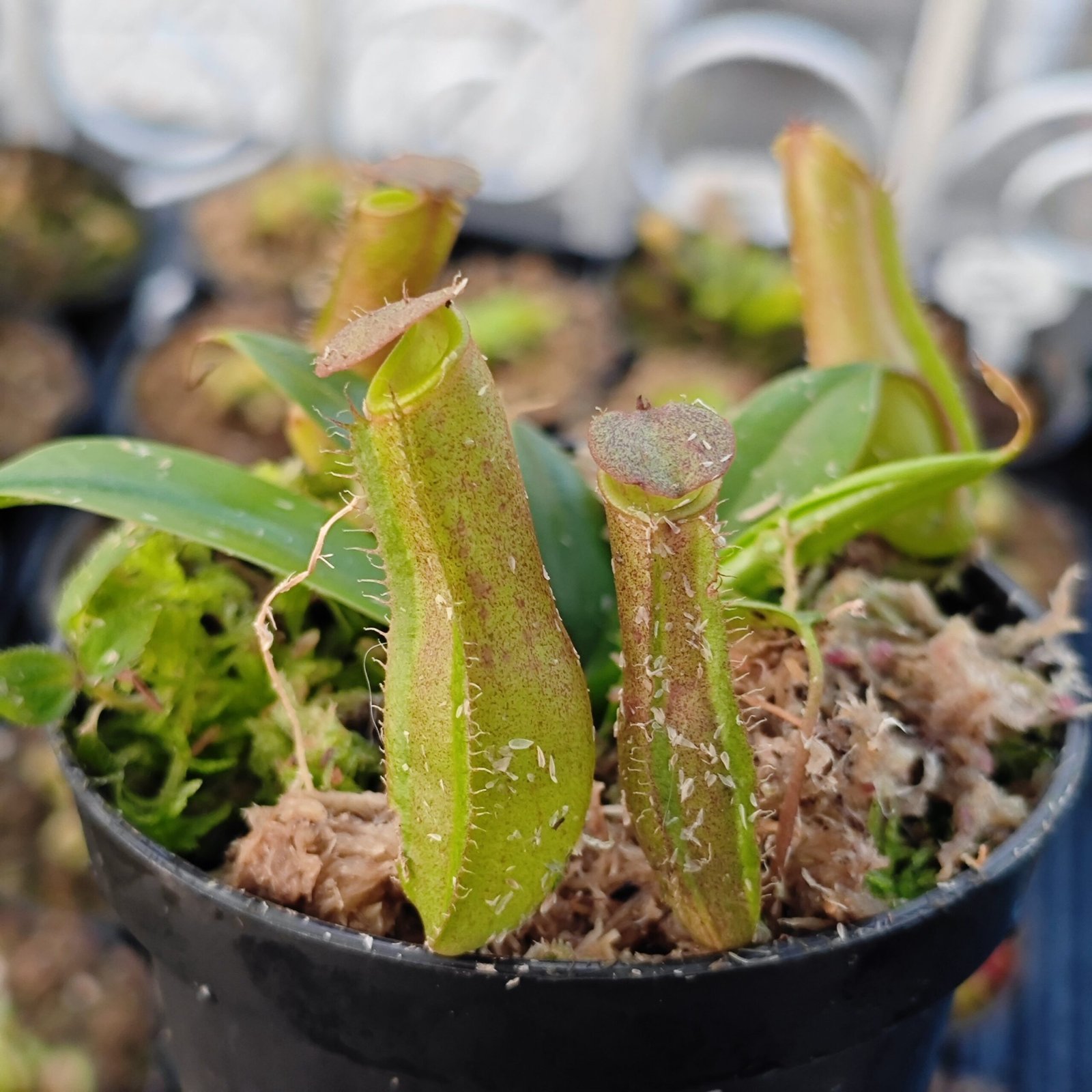 🌿Riego: Por el método del plato, se mantiene la maceta en un plato o recipiente con unos dos o tres centímetros de agua DESTILADA, filtrada o de lluvia.